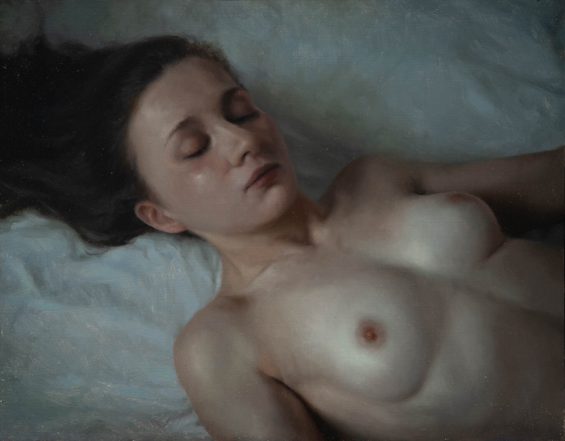 SOLD / Pillow and the girl / oil on acm panel / 50x70 cm